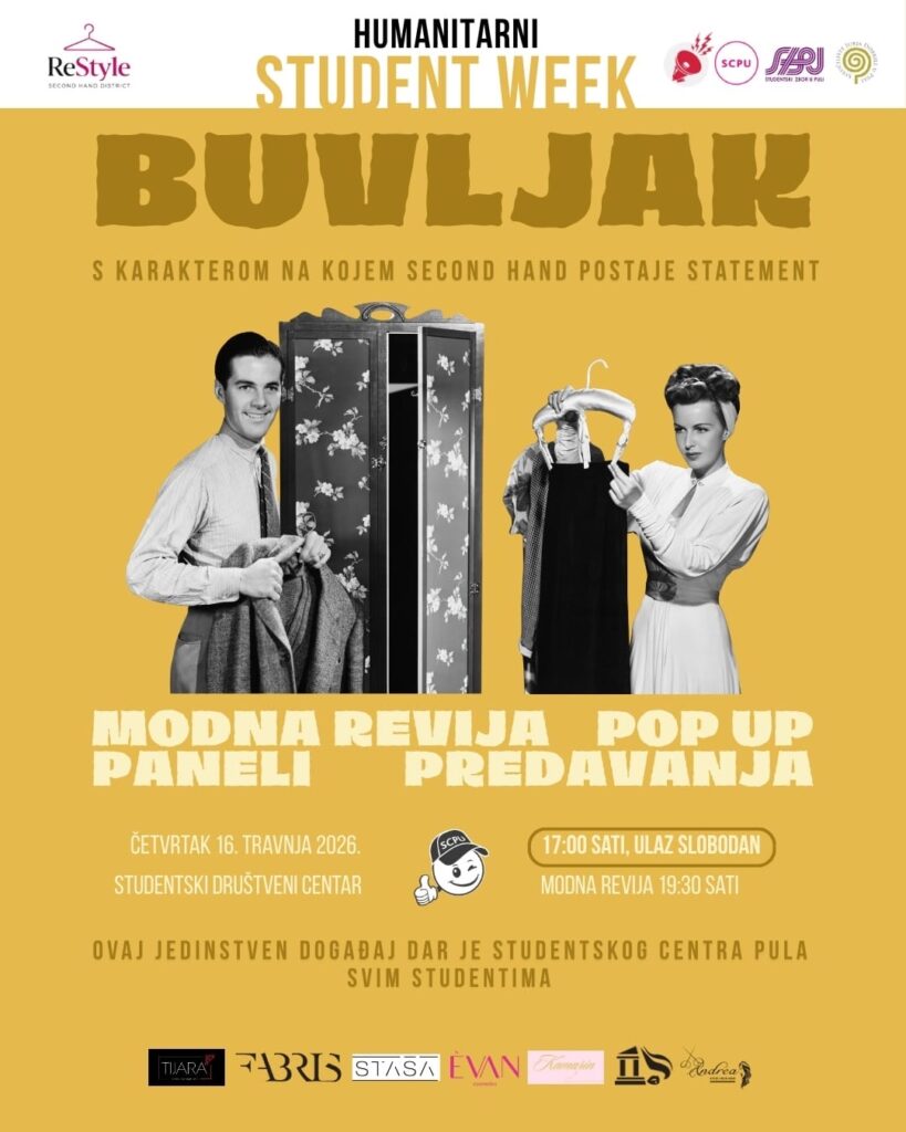 Na lokaciji Laginjina 1, Pula, gdje je novouređeni Studentski društveni centar 16. travnja 2026. godine održat će se jedinstveni event ReStyle – second hand district, koji donosi potpuno novi pogled na second hand modu, održivost i suvremeni stil života.