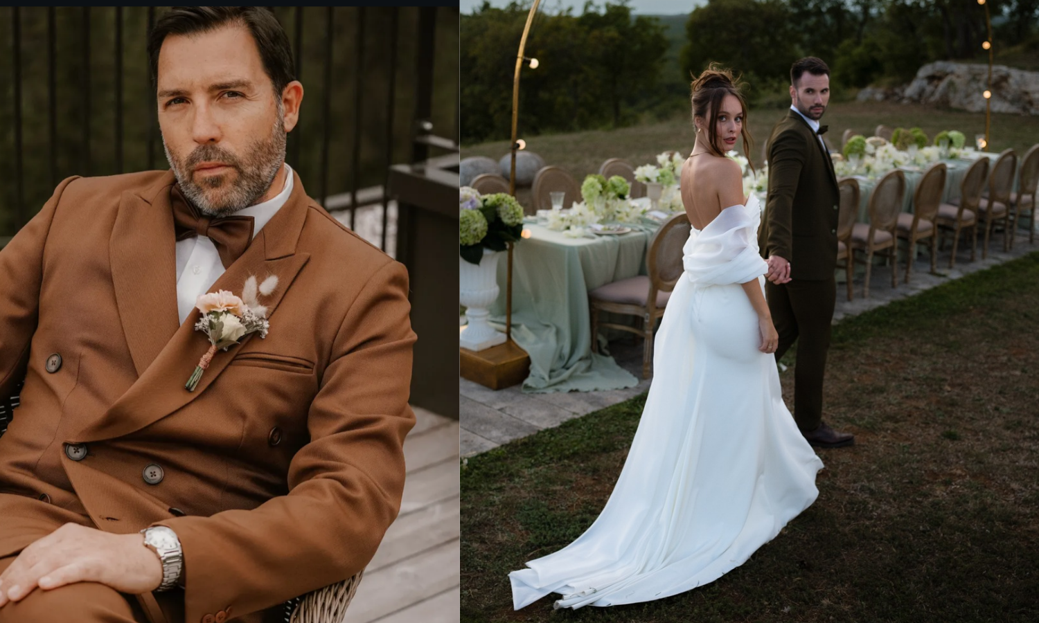 Ekskluzivna svečana odijela predstavila je Anja Stehlik, dizajnerica luksuznog brenda Odijelo iz Pule, poznata po tailor-made pristupu i individualnom kreiranju odijela koja naglašavaju karakter i eleganciju. Vjenčanice je potpisao renomirani zagrebački dizajner Ivan Alduk, čiji su modeli savršeno podigli glamur i sofisticiranost istarske priče.